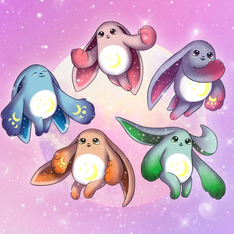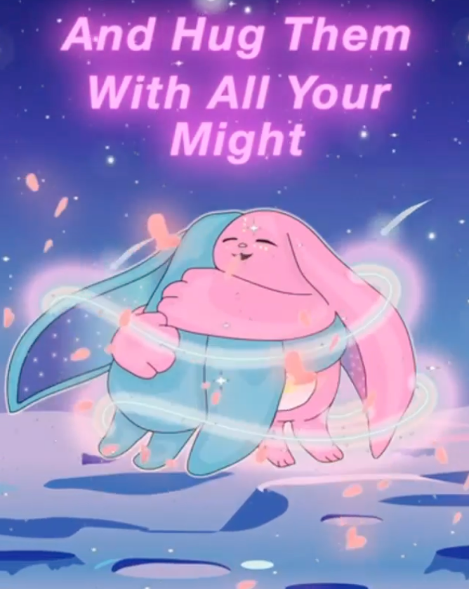 white illustrated stars and hearts illustrated moonpals hugging illustrated moonpals hugging pink cloud